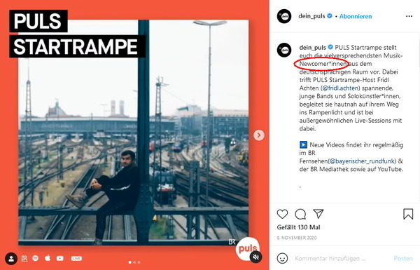 Das Sternchen tut gute Dienste auch im instagram-Kanal von „dein_Puls“, das junge Angebot des Bayrischen Rundfunks (BR) am 4.3.2021:
