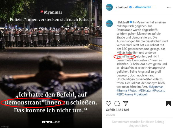 Die Redaktion von RTL aktuell kennt am 11.3.2021 auch keine Scheu vorm Gendersternchen: