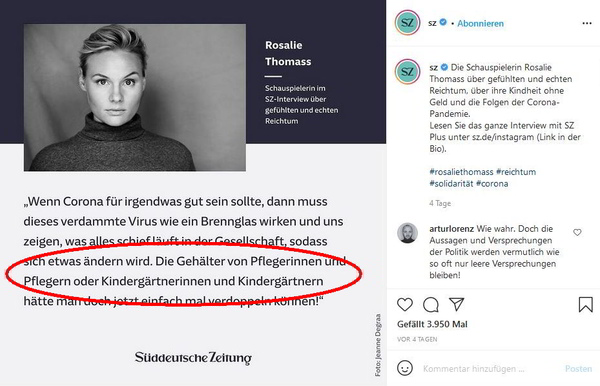 Auf dem Instagram-Account der Süddeutschen Zeitung finden sich am 15.3.2021 Beidnennungen: